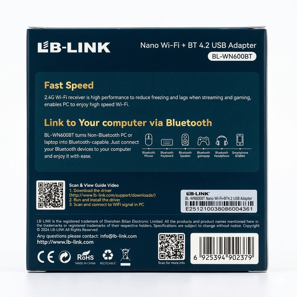 LB-LINK Nano Wi-Fi + BT4.2 USB Adapter – موديل BL-WN600BT